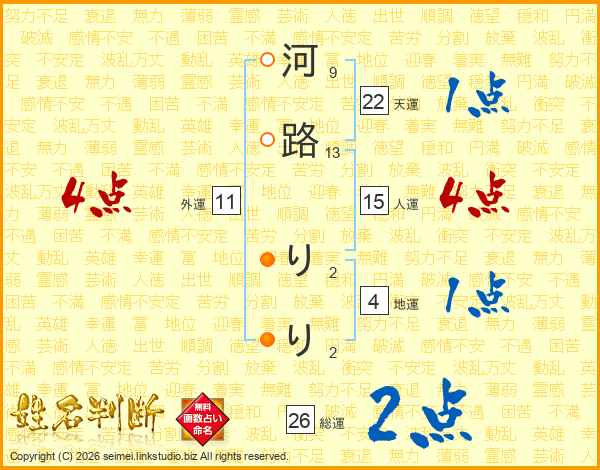 河路りりさんの総運は26画の2点!