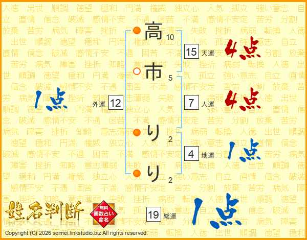 高市りりさんの総運は19画の1点!