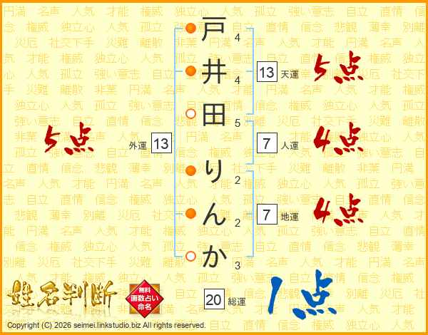 戸井田りんかさんの天運は13画の5点!