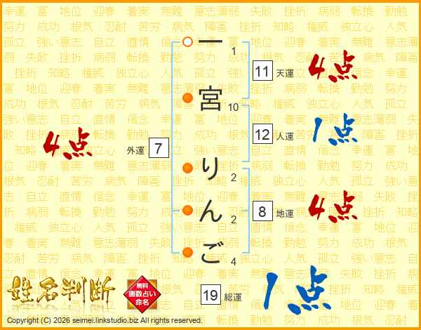 一宮りんごさんの総運は19画の1点!