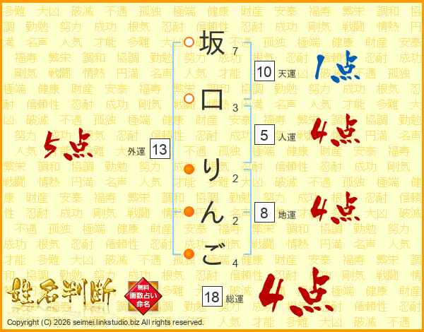 坂口りんごさんの総運は18画の4点!