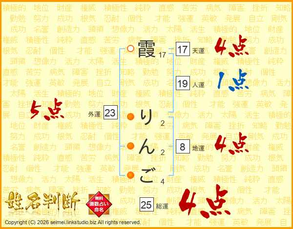 霞りんごさんの総運は25画の4点!