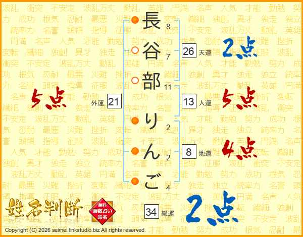 長谷部りんごさんの総運は34画の2点!