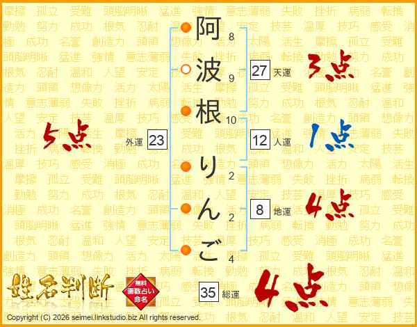 阿波根りんごさんの天運は27画の3点!