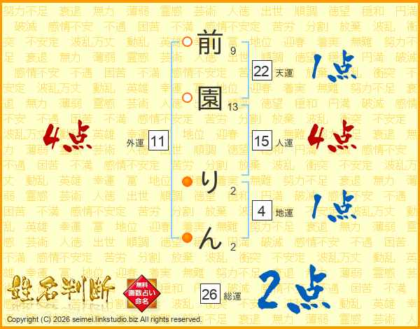 前園りんさんの総運は26画の2点!