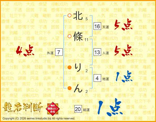 北條りんさんの人運は13画の5点!