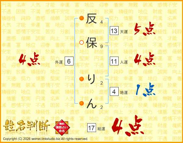 反保りんさんの総運は17画の4点!