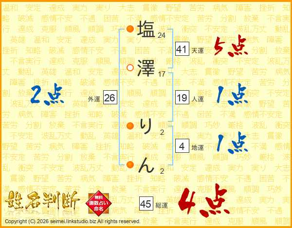 塩澤りんさんの天運は41画の5点!