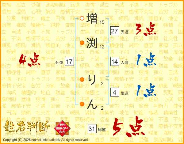 増渕りんさんの総運は31画の5点!