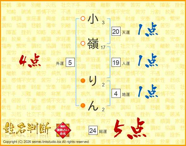 小嶺りんさんの総運は24画の5点!