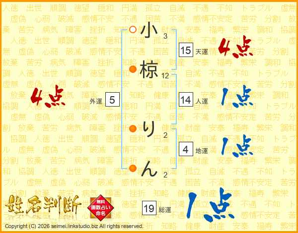 小椋りんさんの天運は15画の4点!