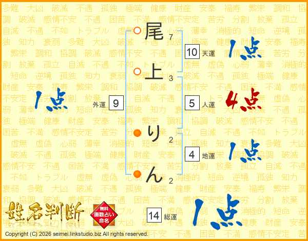 尾上りんさんの総運は14画の1点!