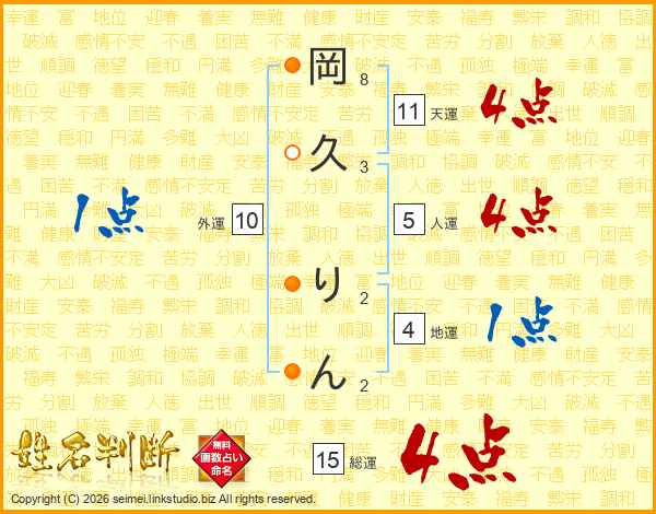 岡久りんさんの総運は15画の4点!