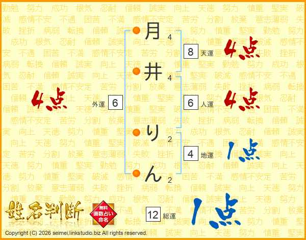 月井りんさんの総運は12画の1点!