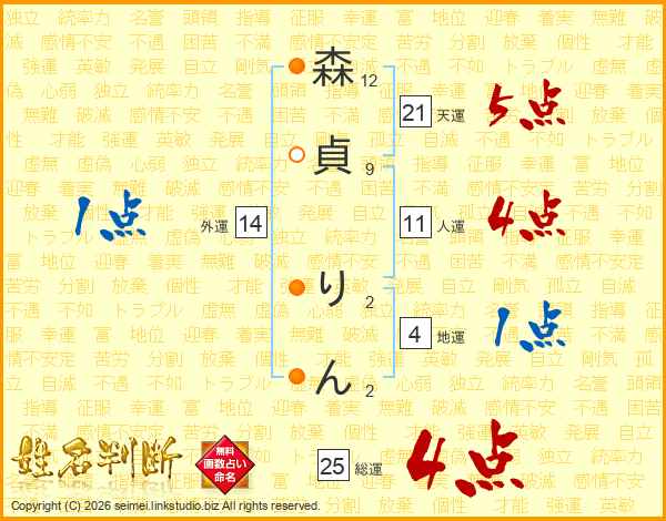 森貞りんさんの総運は25画の4点!