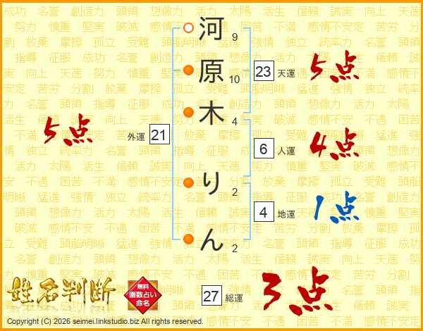 河原木りんさんの総運は27画の3点!