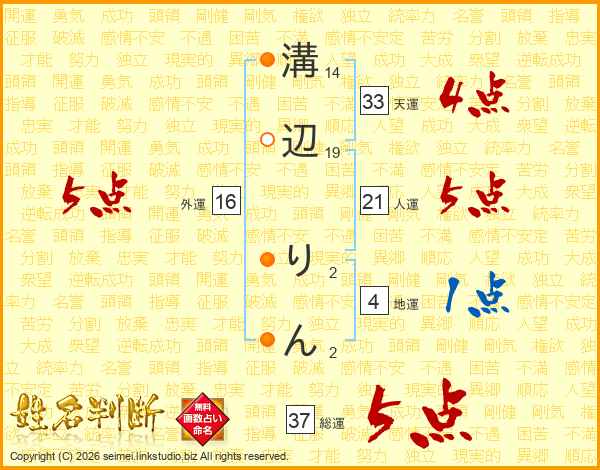 溝辺りんさんの総運は37画の5点!