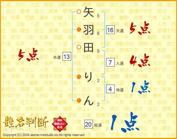矢羽田りんさんの外運は13画の5点!