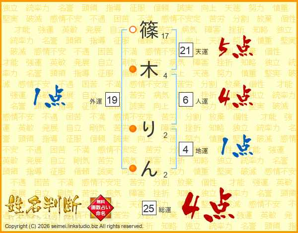 篠木りんさんの総運は25画の4点!