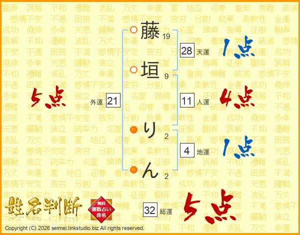 藤垣りんさんの総運は32画の5点!