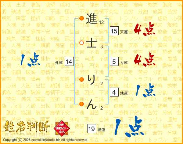 進士りんさんの天運は15画の4点!