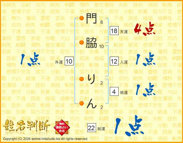 門脇りんさんの総運は22画の1点!