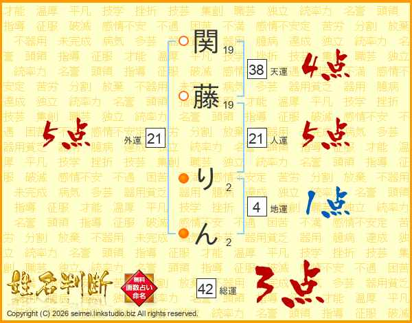 関藤りんさんの天運は38画の4点!