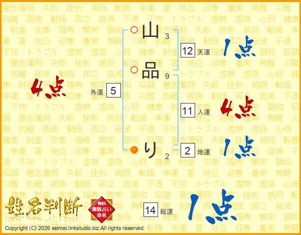 山品りさんの総運は14画の1点!