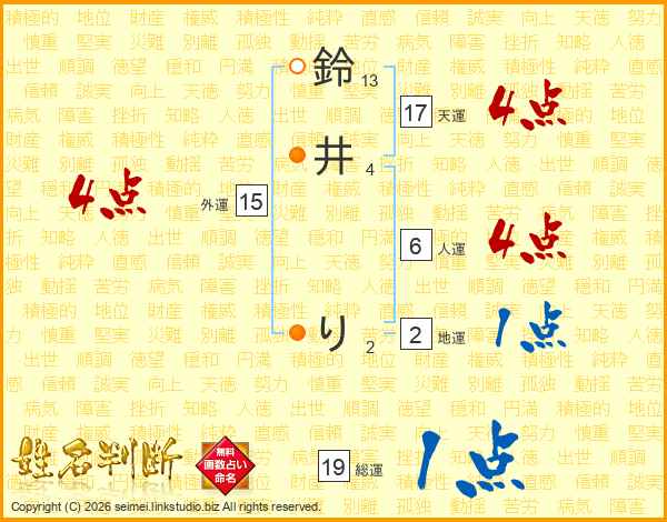 鈴井りさんの総運は19画の1点!