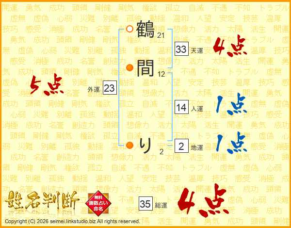 鶴間りさんの総運は35画の4点!