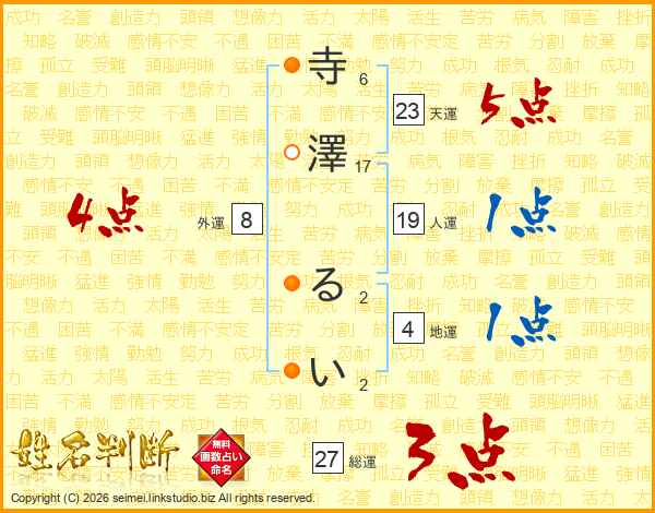 寺澤るいさんの総運は27画の3点!