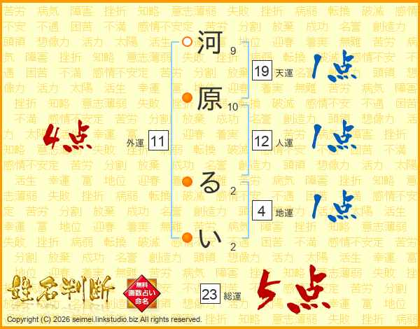 河原るいさんの天運は19画の1点!