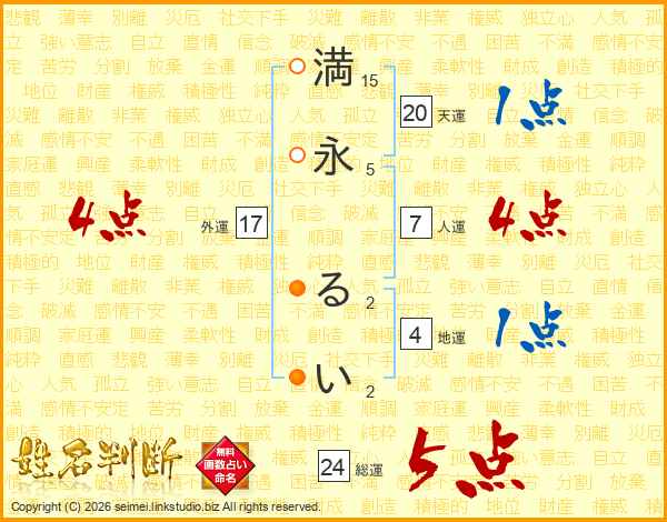 満永るいさんの総運は24画の5点!