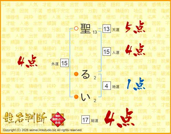 聖るいさんの総運は17画の4点!