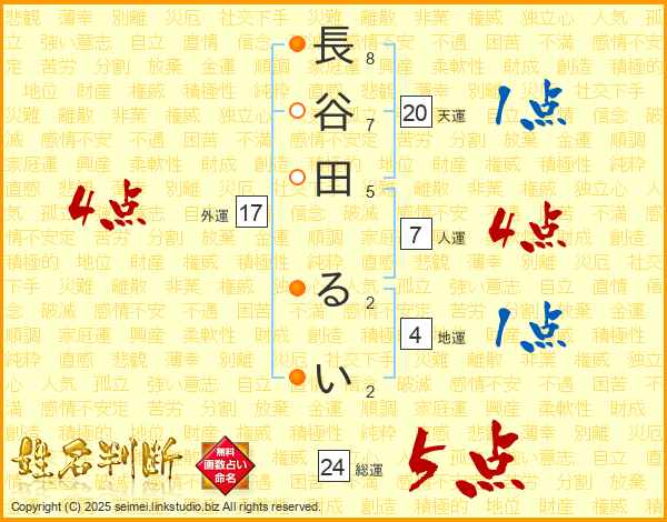 長谷田るいさんの総運は24画の5点!
