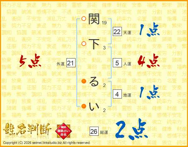 関下るいさんの総運は26画の2点!