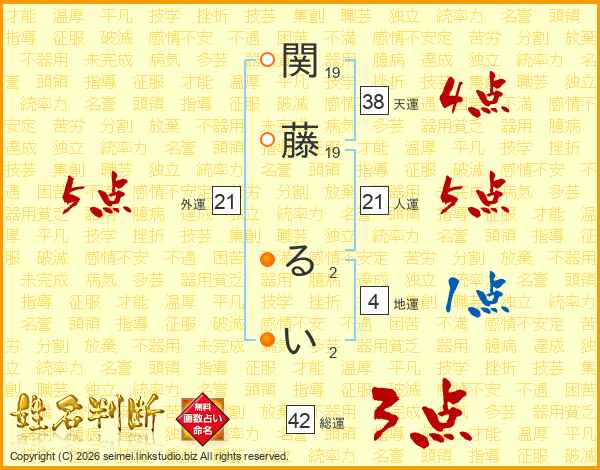 関藤るいさんの天運は38画の4点!
