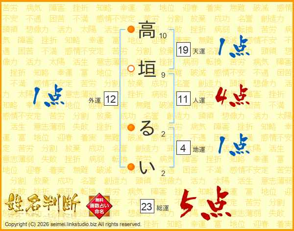 高垣るいさんの天運は19画の1点!