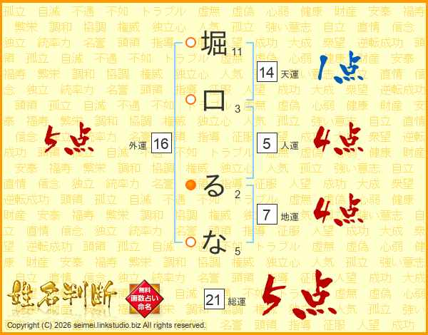 堀口るなさんの総運は21画の5点!