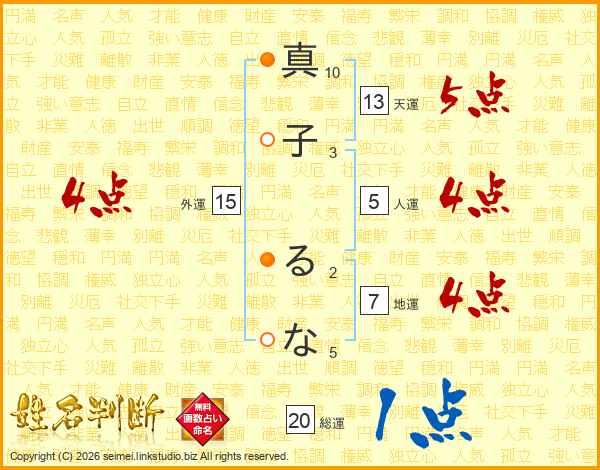 真子るなさんの総運は20画の1点!