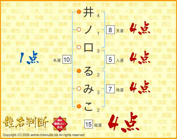 井(4画)ノ(1画)口(3画) る(2画)み(3画)こ(2画)