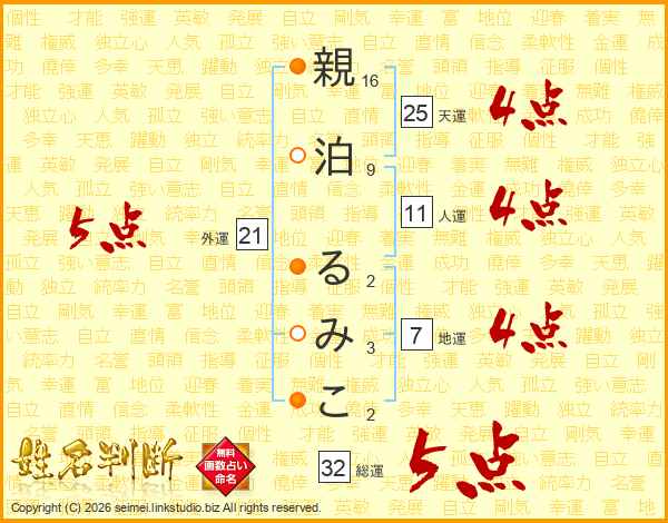 親泊るみこさんの外運は21画の5点!