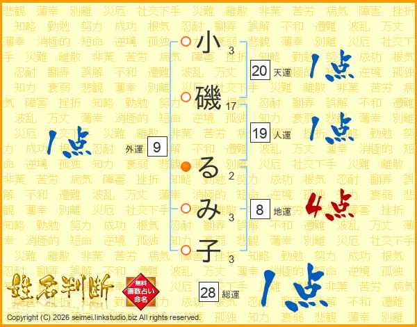 小磯るみ子さんの総運は28画の1点!