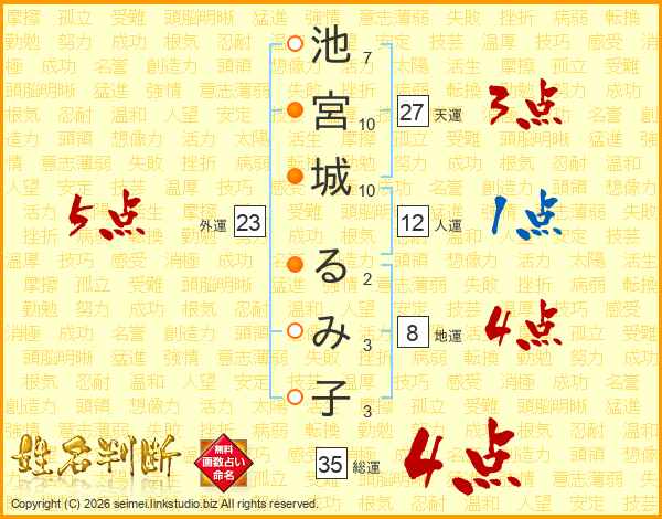 池宮城るみ子さんの総運は35画の4点!