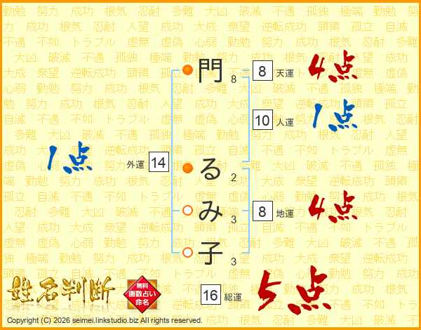 門るみ子さんの総運は16画の5点!