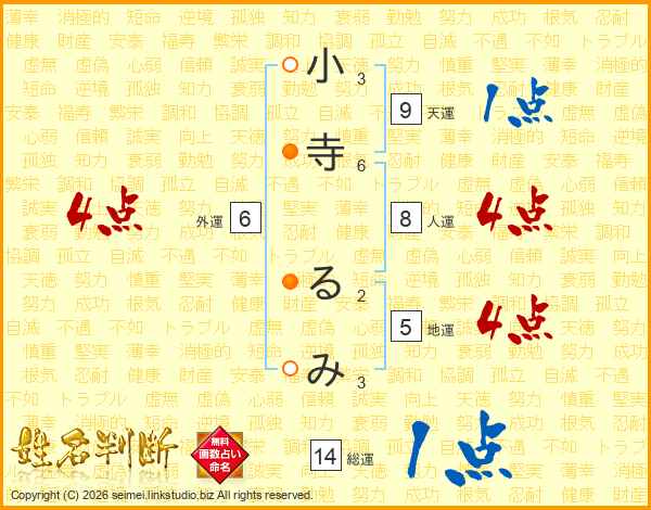 小寺るみさんの総運は14画の1点!
