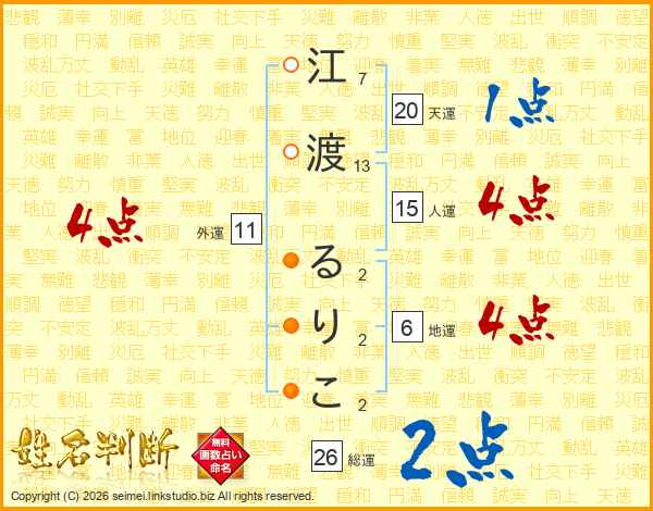 江渡るりこさんの総運は26画の2点!