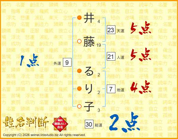 井(4画)藤(19画) る(2画)り(2画)子(3画)