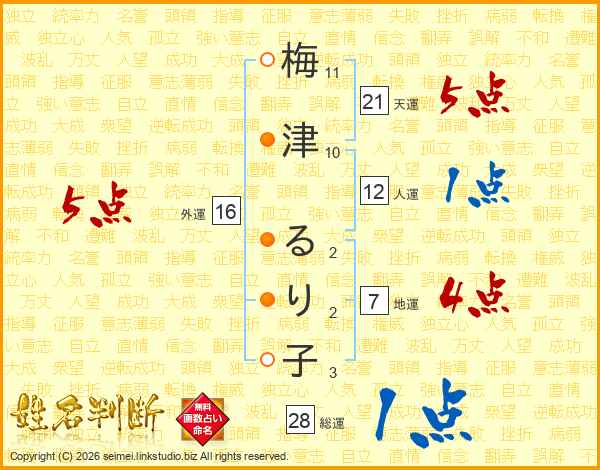 梅津るり子さんの総運は28画の1点!