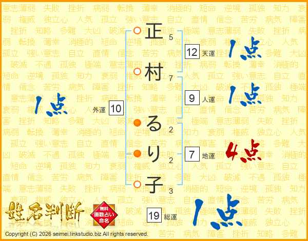 正村るり子さんの総運は19画の1点!